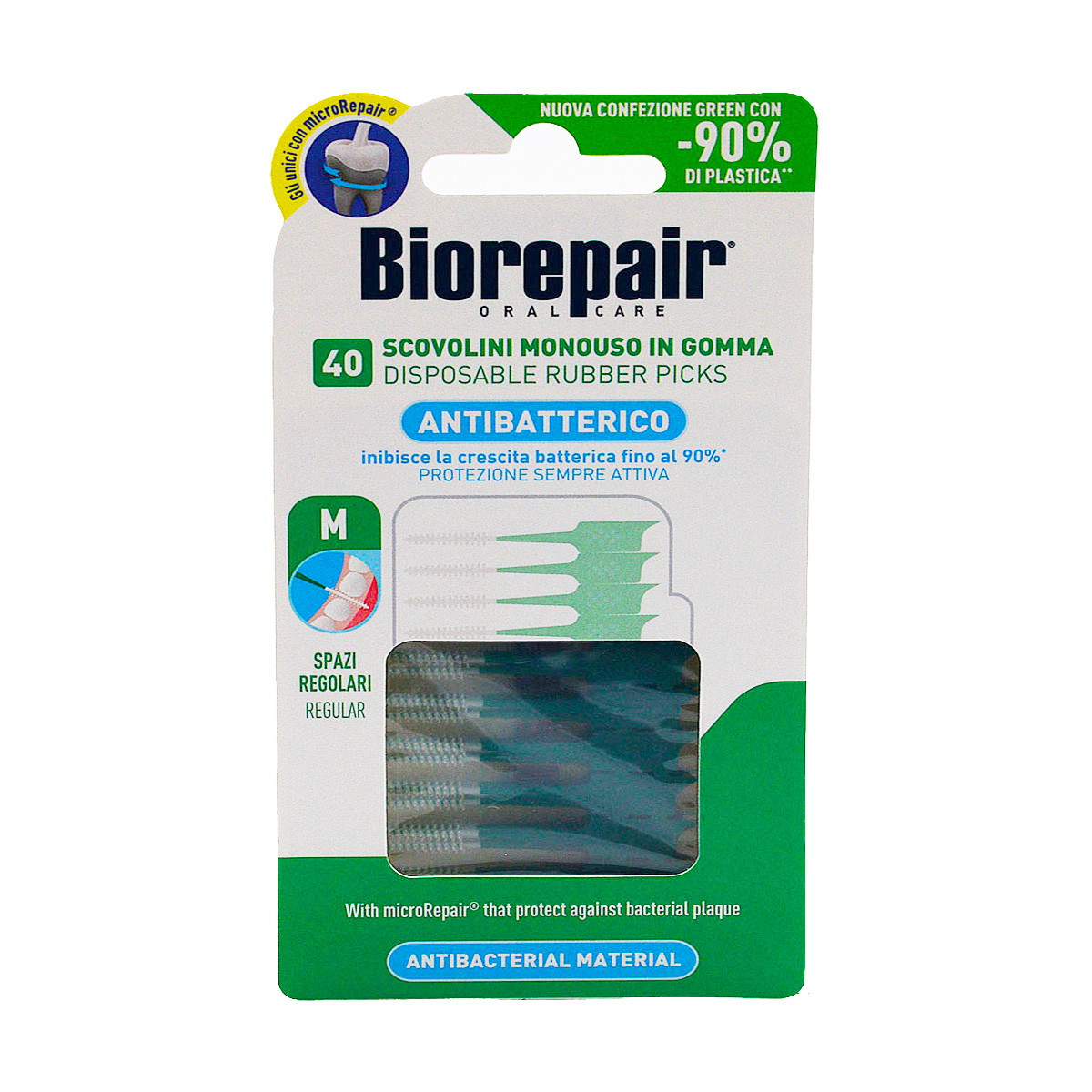 Biorepair Scovolini Monouso In Gomma Antibatterico, 40 Pezzi