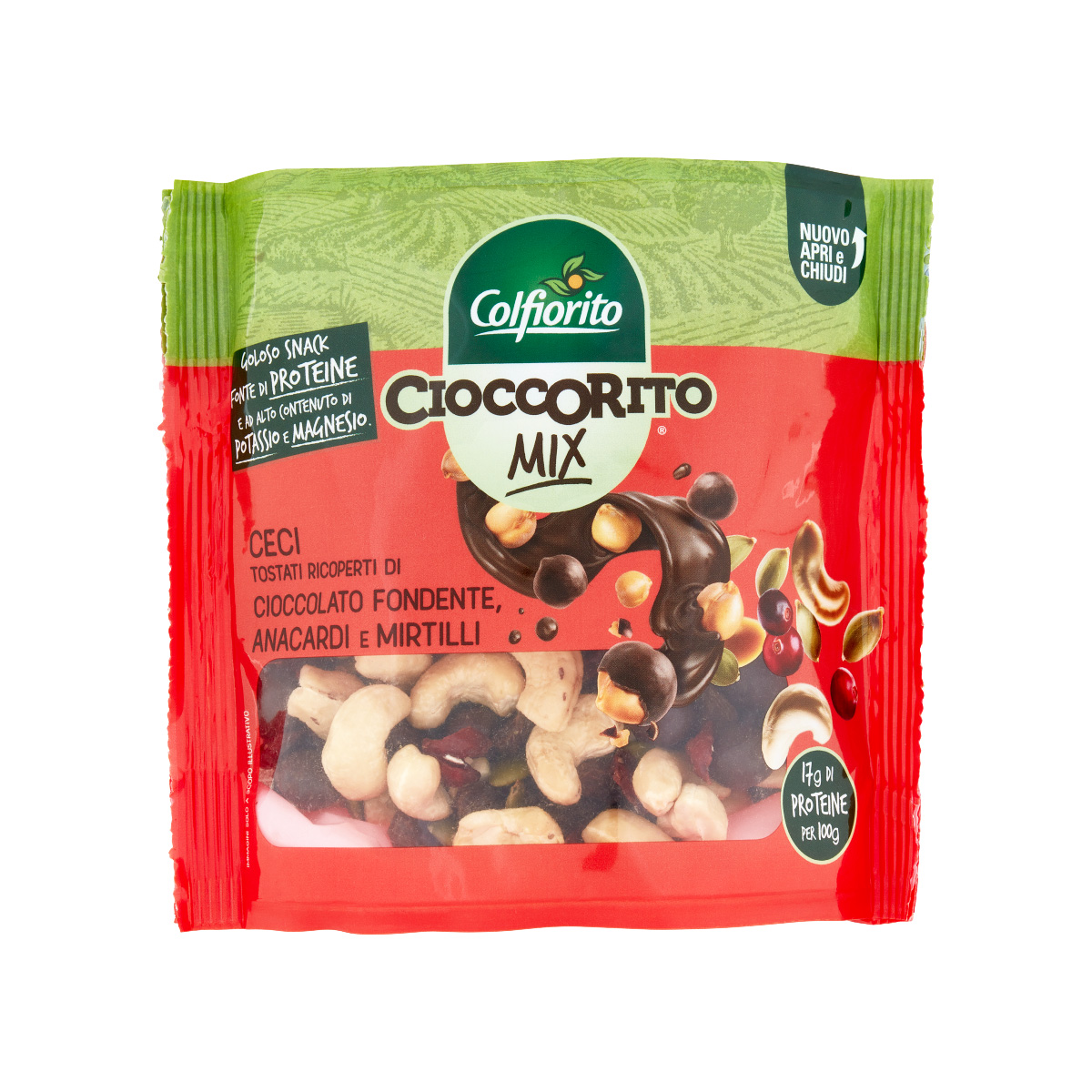 Colfiorito Cioccorito Mix, Ceci Tostati Ricoperti di Cioccolato Fondente, Anacardi e Mirtilli 150g