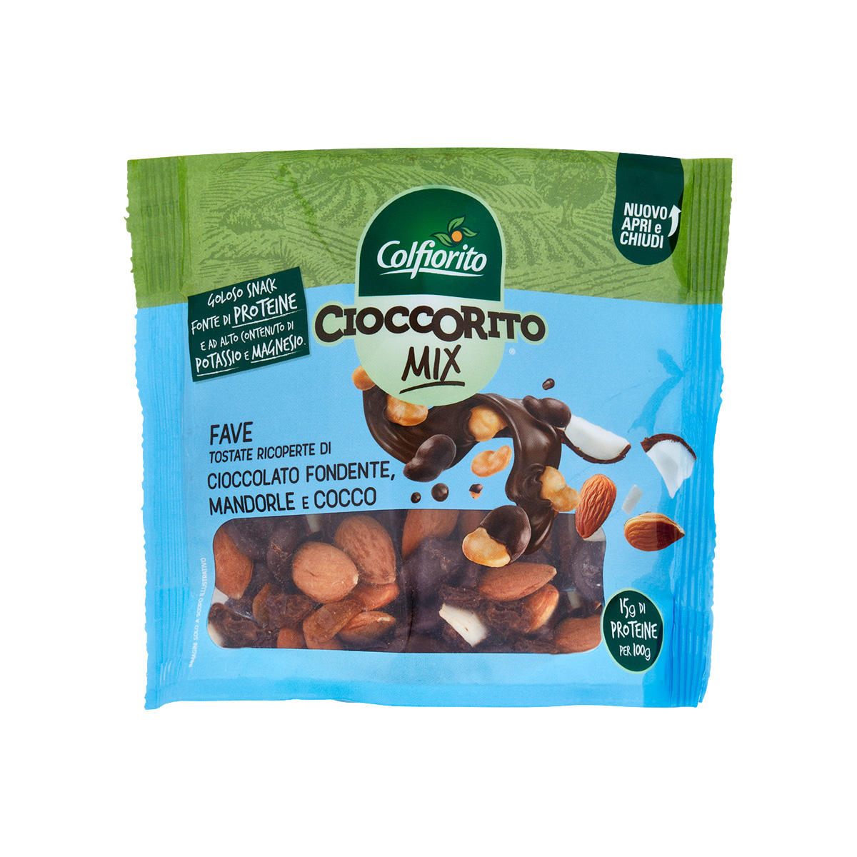 Colfiorito Cioccorito Mix, Fave Tostate Ricoperte di Cioccolato Fondente, Mandorle e Cocco 150g