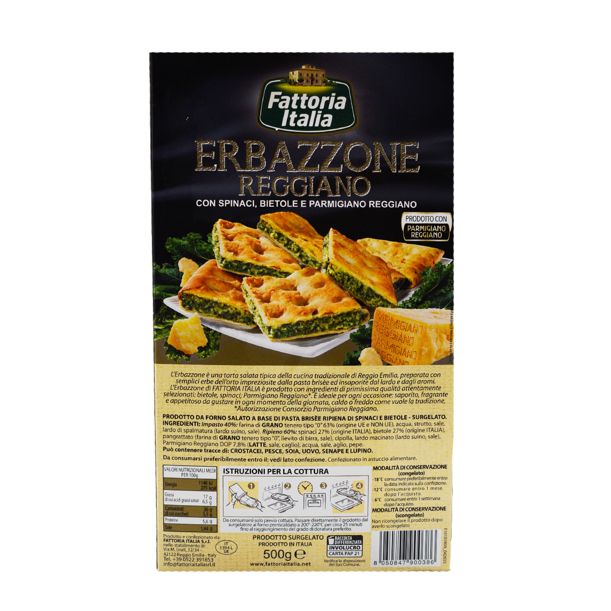 Fattoria Italia Erbazzone Reggiano, con Spinaci, Bietole e Parmigiano Reggiano 500g