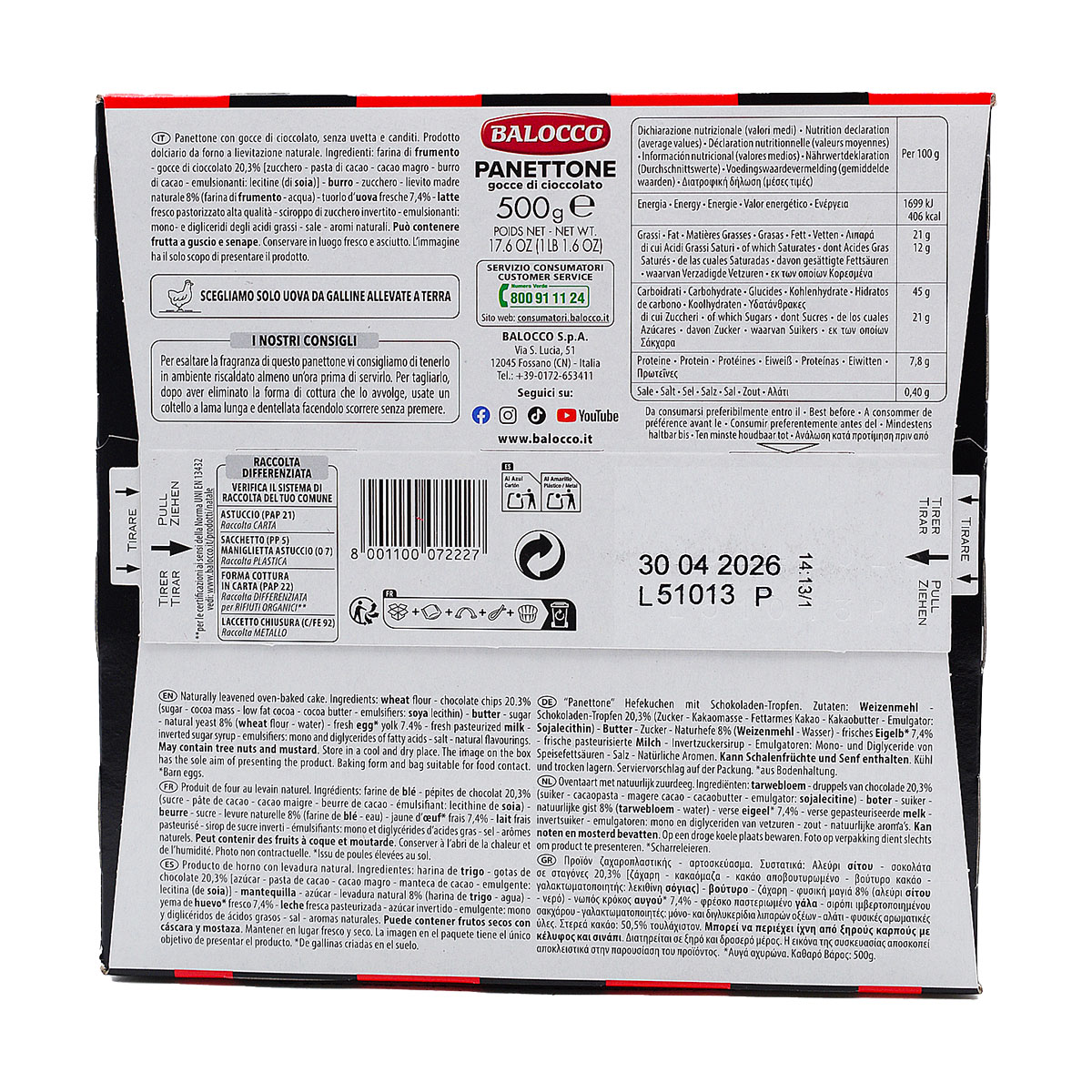 Balocco Panettone Gocce di Cioccolato, con Sciarpa Ufficiale Milan 500g