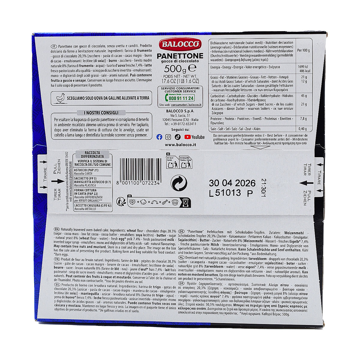 Balocco Panettone Gocce di Cioccolato, con Sciarpa Ufficiale Inter 500g